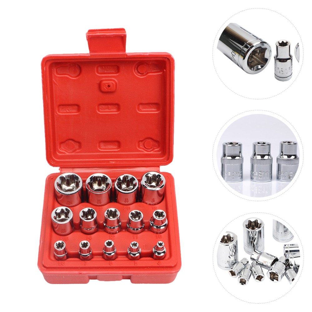 14 Pcs/Set Hexagonal Plum Blossom Sleeve Socket with Storage Steel Sockets Kit
